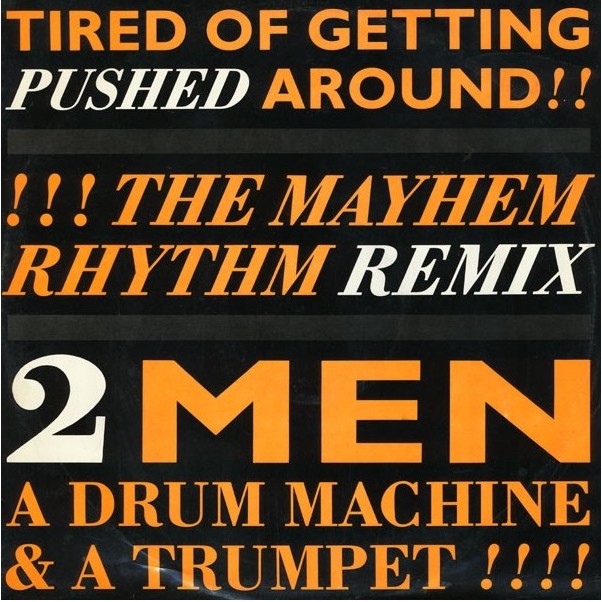Sadly, for 2 Men A Drum Machine And A Trumpet, Tired Of Getting Pushed Around was their high water mark, reaching 18 in the UK charts, and their one and only release.